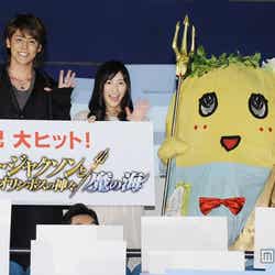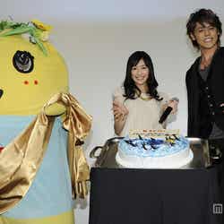 AKB48の渡辺麻友が3日、都内で行われた映画「パーシー・ジャクソンとオリンポスの神々:魔の海」大ヒット舞台挨拶に、声優の宮野真守と千葉県船橋市非公認のご当地キャラ・ふなっしーとともに出席した。