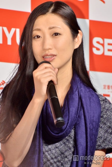 壇蜜はグレーをベースとしたチェックのカジュアルなワンピースにショートブーツを合わせて登場。膝上丈のミニワンピースに「歳相応じゃないですが」と謙遜した。