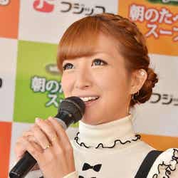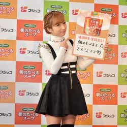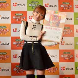 タレントの辻希美が14日、都内で行われたフジッコ「朝のたべるスープ」PRイベントに出席した。