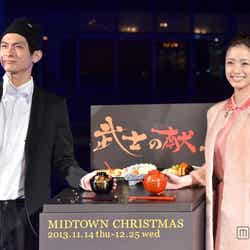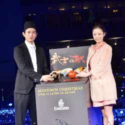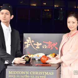 上戸と高良は12月14日より公開される映画「武士の献立」に出演。点灯式では、映画の内容にちなみ、2人が持つお椀が用意されたセットに配膳されると、イルミネーションが点灯。青色の光が辺り一面を灯すと2人は思わず笑顔に。幻想的な世界に酔いしれた。