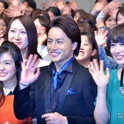 ブラックのスーツに、ブルーのサテン地スカーフをチラ見せし、エレガントな装いで登場した白濱。この日は、ドラマの上映会も行われたが、作品シーンでは白シャツから美しく割れた腹筋を大胆披露し集まったファンを魅了した。