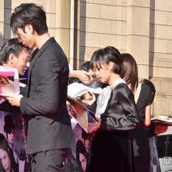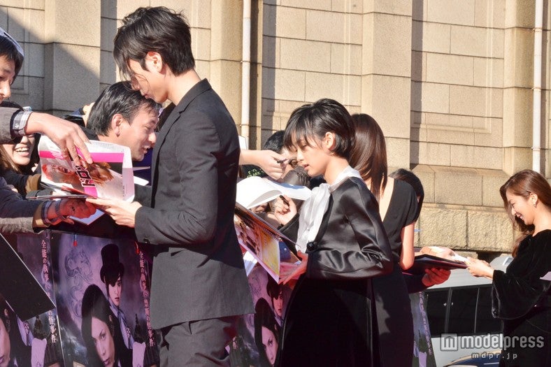 映画「黒執事」(2014年1月18日公開)完成報告イベントに、剛力彩芽、優香、山本美月、大谷健太郎監督とともに出席した水嶋。リムジンで登場した水嶋ら登壇者は、レッドカーペットで招待されたファンのサインや握手に応じ、交流を図った。