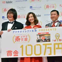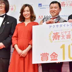 この日行われた「寿ビデオ大賞」の表彰式に登場した優木は、真っ赤なドレスにリボンをモチーフとしたフラットシューズを合わせ、笑顔で登場。妊娠5ヶ月目に入り、ふっくらとしたお腹を披露した。