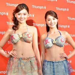トリンプ・インターナショナル・ジャパン株式会社のイメージガールを務める大石は28日、都内で行われた「おもてなしコンパクトブラ」発表会に同じくイメージガールの高原愛と出席。同社では毎年、世相を反映させたユニークなブラジャーを発表しているが、この日大石は「おもてなしコンパクトブラ」を着用して登場した。