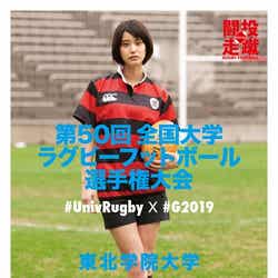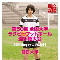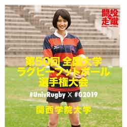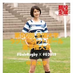 本大会でのイメージモデル起用は、山崎が初。現在大学1年生の19歳で、選手たちと同年代の彼女は「50回という節目にこのような歴史のある大会のイメージモデルをさせていただけることを本当に光栄に思っています。同時に、このイメージモデルという仕事の重みや責任を痛感しています」とコメント。「今回、大学ラグビー初のイメージモデルを務めますが、母校を応援する同年代の学生たちと共に、各校の母校愛を選手たちに伝えられるよう、一緒に盛り上げて行きたいと思います」と意気込み、「私も全力投蹴、全力闘走。精一杯エールを送っていきますので、一緒に母校を応援しましょう!」とメッセージを送っている。