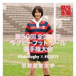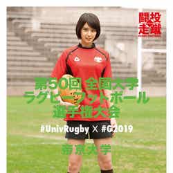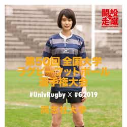 「今回、大学ラグビー初のイメージモデルを務めますが、母校を応援する同年代の学生たちと共に、各校の母校愛を選手たちに伝えられるよう、一緒に盛り上げて行きたいと思います」と意気込み、「私も全力投蹴、全力闘走。精一杯エールを送っていきますので、一緒に母校を応援しましょう!」とメッセージを送っている。