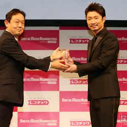 11日に行われた「DIGITAL MUSIC AWARDS 2013 powered by レコチョク」の授賞式に登壇したゴールデンボンバー。楽曲「女々しくて」がレコチョクランキング1位を獲得し、受賞の喜びを「トロフィーをもらえて嬉しい」と率直に語り、「未だに実感が持てませんが、周りの人がカラオケで歌っているなどと聞くと、『本当に流行っているんだ』と感じます」としみじみ。「一発屋ではなく、二発屋としてやっていこうと思います」と意気込んだ。