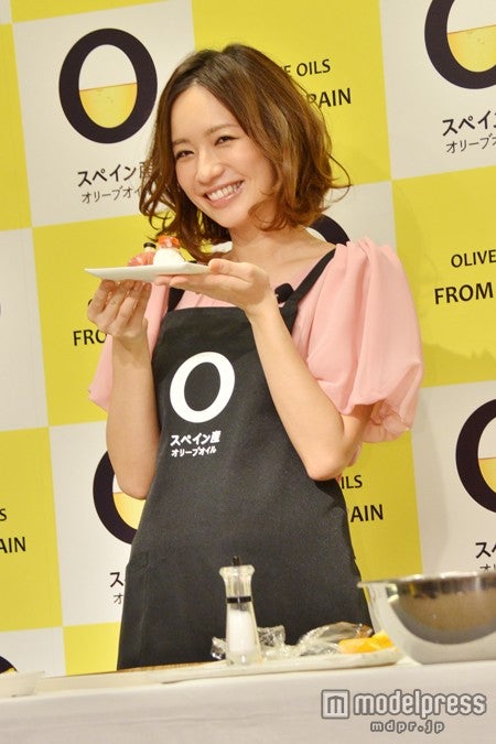 19日、妊娠6ヶ月の優木は都内で行われた「スペイン産オリーブオイルを使った“おうちでバル”レシピ発表会」に出席し、報道陣を前にピンクのワンピースから、ふっくらとしたお腹を披露。