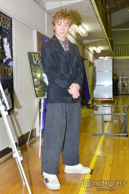 主演舞台「BUMP」の公開稽古を行った早乙女。稽古前に報道陣の取材に応じた。