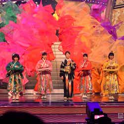 17回目の出場となった香西は、黒を基調とした着物姿で艶やかに登場。それに合わせてももクロメンバーも、それぞれのカラーの着物をまとって共演した。赤、桃、黄、緑、紫の踊り子となったももクロたちが、キュートに舞い踊って香西の「酒のやど」を盛り上げ。香西のしなやかな歌声に、ももクロのダンスが色を添えた。