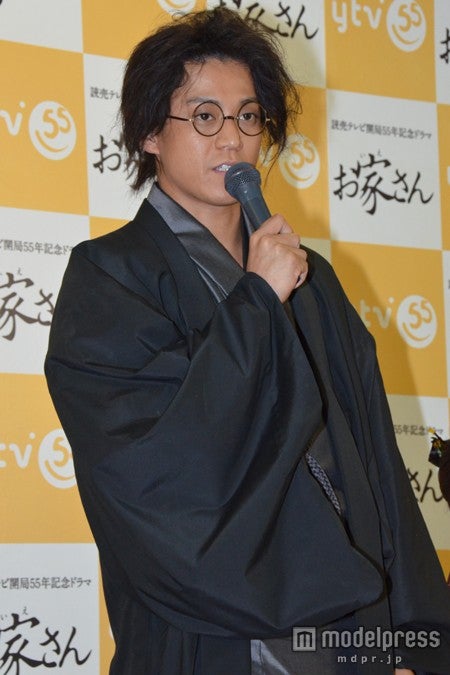 小栗は13日、都内で行われた読売テレビ開局55年記念ドラマ「お家さん」(2014年放送予定)の制作発表記者会見に、初共演の女優・天海祐希とともに出席した。同作は、明治から昭和の時代に、国家予算を遥かに上回る売り上げを誇った「鈴木商店」の女主人・鈴木よね(天海)と、大番頭・金子直吉(小栗)の人生を描くヒューマンドラマ。この日小栗は、ボサボサ頭に丸メガネ、和装姿という役柄の衣装で登場。普段とはガラリ違った雰囲気に、会場は圧倒された。