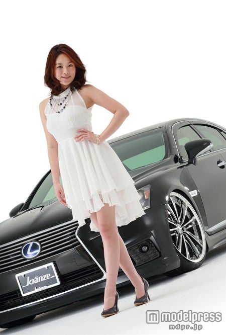 「weds」の19代目イメージガールに抜擢された筧は10日、「東京オートサロン2014」(千葉・幕張メッセ)で行われた記者会見に出席。ボリューム感のあるレースのミニワンピースで女性らしくしなやかな美脚を披露した。