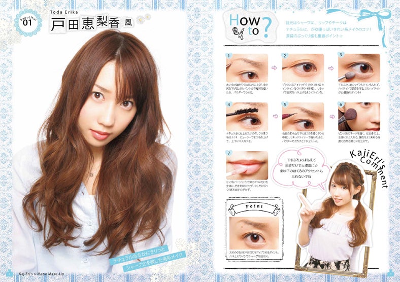 同書には、戸田恵梨香、ローラ、AKB48、芹那、安室奈美恵など、誰もが憧れる顔に簡単に近づけるメイク方法を掲載。さらに、日本を代表する女優・モデル・タレント・アーティストに加え、オードリー・ヘップバーンやアン・ハサウェイなどの海外セレブまで、幅広いラインナップで紹介している。また、シンプルで簡単なメイク方法のほか、「自撮り&おすすめカメラアプリ」や「真似メイクで使う基本コスメ」など、『かじえり流』の可愛く似せるテクニックも多数掲載している。(モデルプレス)