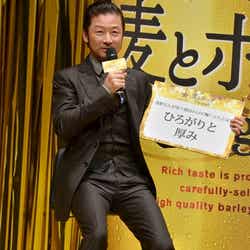 一方で、岡田は「そばに居ても香り立つ存在で、コクがあるというか深みがすごいなと思います。僕もこういう年の取り方をしたいなとおもいますね。かっこいいです」と浅野に憧れの眼差しを送ると、浅野はにこやかに岡田を見つめ返す場面も。新CM演出さながらの「ホメの掛け合い」が繰り広げられた。