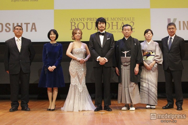 浜崎は27日(現地時間)、フランス・ルーブル美術館にて行われた映画「BUDDHA2 手塚治虫のブッダ―終わりなき旅―」(2月8日公開)のワールドプレミアに、松山ケンイチ、観世清河寿、小村敏明監督、森下孝三エグゼクティブ・プロデューサーとともに出席。胸元セクシーなイブニングドレスを身に纏いレッドカーペットに登場した。