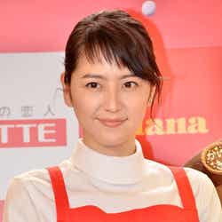 6日、長澤は女優の武井咲とともに都内で行われたイベントに出席。この日は真っ赤なエプロン姿で登場した。