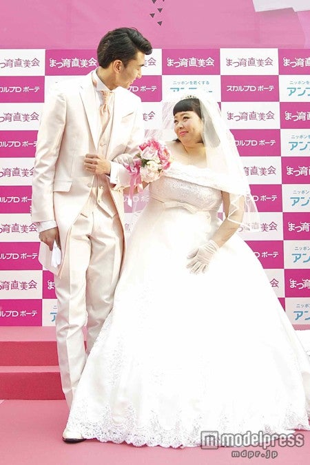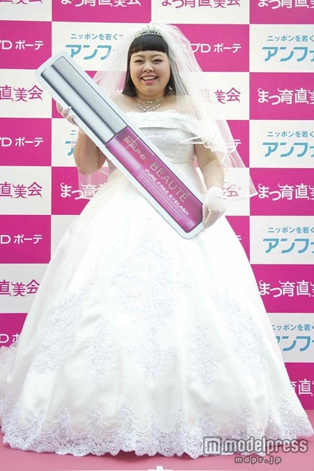 お笑いタレントの渡辺直美が、純白のウエディングドレス姿を披露した。