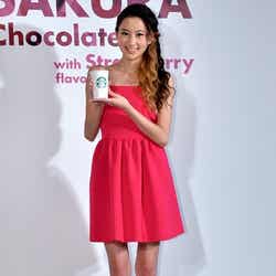 河北は18日、都内にて行われたスターバックスコーヒーのイベントに出席。鮮やかなピンクのセクシーミニワンピースで登場した河北は、「ウキウキな感じを表現してきました。春全開でいきます」と笑顔でこだわりを語った。