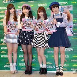譜久村聖、鞘師里保、石田亜佑美、工藤遥の4名は21日、表紙を務めた書籍「B.L.T U-17 Vol.29」の発売を記念し、都内で握手会イベントを開催。全員、ミニスカートで登場した。