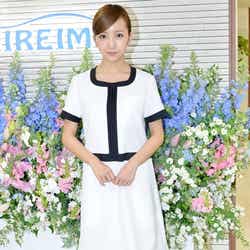 28日、都内にて行われた脱毛サロンの「制服発表会」に出席した板野。ロングヘアを1つにまとめ、自身がデザインしたワンピースデザインの制服に黒パンプスを合わせて美脚を披露した。