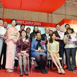 4日、「FOODEX JAPAN 2014」(幕張メッセ)内にて、日本初の女性による国際ワインコンペティション「第1回 Japan Women’s Wine Award 2014~SAKURA Wine Award~」の受賞ワイン表彰式が行われ、ワインエキスパートの資格を所有する押切がスペシャルゲストとして来場。胸元のデコレーションがきらめくドレス姿でスラリとした美脚を披露し、各受賞者にトロフィーを授与した。