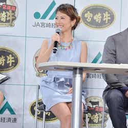 7日、「宮崎牛すき焼き晩餐会」のイベントに出席した宮崎県出身の神戸は、水色のミニワンピースにピンクのヒールを合わせた爽やかな装いで登場。