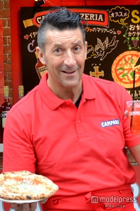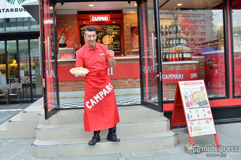 12日、東京・赤坂サカス「サカス広場」にて期間限定オープンとなった「CAMPARI PIZZERIA(カンパリピッツェリア)」の1日店長を務めたジローラモ。