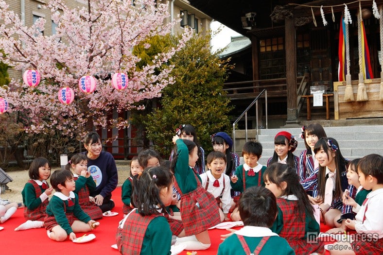 一足早い花見を楽しむ園児たちにメンバーが近づくと、「さっしーだ!」と歓声が。指原は「こんにちは~!HKT48です。今日は桜が咲いているここで、一足早い花見をしていると聞いて、遊びに来ちゃいました。私たちも一緒に花見をさせてもらっていいですか?」と挨拶。園児たちに温かく迎え入れられたメンバーは、桜餅を食しながら花見を楽しんだ。また、イベントでは指原を前に、園児たちがAKB48の楽曲で指原がセンターを務めた「恋するフォーチュンクッキー」を踊り出す一幕も。これに指原は「すごいじゃーん。うれしい」と驚きながら喜びを爆発させた。そして松岡が、園児たちに新曲「桜、みんなで食べた」を一緒に踊ることを提案。メンバーがポイントを教えながら手本を披露し、園児たちと一緒になってダンスを楽しんだ。