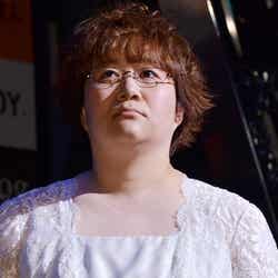 17日、都内にて行われた「よしもと男前ブサイクランキング 2014」大発表会に出席した、「ハリセンボン」の近藤春菜。レースをあしらった白のロングドレスを披露した。