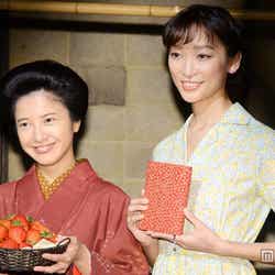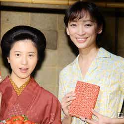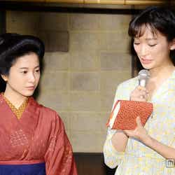 NHK朝の連続テレビ小説のヒロインバトンタッチセレモニーが18日、横浜市内で行われ、放送中の「ごちそうさん」の杏と次回作「花子とアン」の吉高が出席。ヒロイン同士がそれぞれの作品にちなんだプレゼントを交換する恒例のセレモニーで、杏からは食いしん坊のヒロイン・め以子が初めて人に食べさせたいと思った「いちご」、吉高からは物語の舞台である山梨の伝統技術で作られた「ブックカバー」が贈られた。