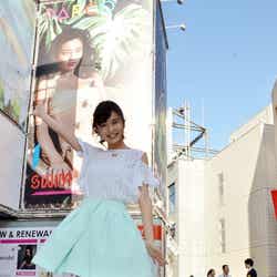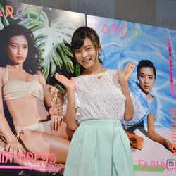 今回の抜擢に縦7m×横4mの小島の巨大看板が渋谷に登場。小島は「こんなに大きいのかと思ってびっくりしました」とにっこり。店内のポスターも見たと語り、「出来上がった時は『誰?』って思いました。いつもの自分と違うので、新鮮さと恥ずかしさで赤面しちゃいましたね」と照れ笑いで明かした。ポスターでは、SEXYなバンドゥビキニでのショットと、ブルーの変形ワンピースを着こなし、クールな大人の色気で魅了。今回初めてのフィルム撮影をこなし、「撮影の時にポーズを確認出来なかったんですよ。撮ってみなければわからなかったので新鮮でした」と振り返り。カメラマンからは「媚びない女で」という指示をもらったと言い、「いろんなパターンをやらせてもらってドキドキしちゃって。こんなに緊張したことはないです。いい経験をさせていただきました」と笑顔を見せた。