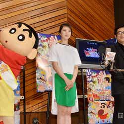 また、武井は幼少時から、「クレヨンしんちゃん」に親しみがあったという。「20歳になって、こうしてしんちゃんとお仕事できることが本当に夢みたいでめちゃくちゃ嬉しいんです」と歓喜。これを聞いたしんちゃんが、「オラも嬉しいよ~!咲ちゃん結婚しよ~!」と武井の手を取る一幕も。さらにコロッケが、テレビアニメ「クレヨンしんちゃん」の3代目オープニングテーマ「オラはにんきもの」を森進一、長渕剛、徳永英明らのものまねで歌唱するなど、会場は終始、笑いに包まれていた。映画「クレヨンしんちゃん ガチンコ!逆襲のロボとーちゃん」は4月19日に全国公開。(モデルプレス)