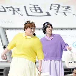 青文字カルチャーを発信するファッション誌「mer」で活躍するモデル・武智志穂や柴田紗希が、ロバートの山本博、馬場裕之とそれぞれ仲よさげに腕を組みながらウォーキング。去り際には、秋山竜次が三戸なつめに上半身裸のまま密着。観客から絶叫があがるなど、イベントは大盛り上がり。“天使すぎる”橋本環奈とNMB48の渡辺美優紀も参戦