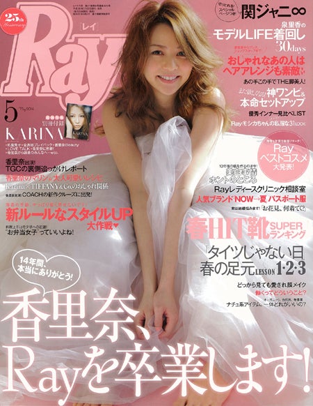 雑誌「Ray」5月号(3月22日発売)をもって、14年間務めた同誌専属モデルを卒業した香里奈は、卒業を記念して24日、都内にて握手会を実施。報道陣向けに行われた囲み取材では、一般男性との交際について「進展は?」と記者から質問を受けると、「30歳なので、人並みにお付き合いしてます」とコメント。「交際は順調?」と詰められると、「何事もなければそういうことになると思いますけど、先のことは分からない」と熱愛宣言ともとれる答えで返した。また、結婚については「前は30歳って言ってたんですけど、タイミングとか流れとか、そういう機会があれば」と前向きな様子。「Ray」5月号の表紙で純白のドレスを着こなしているため、「結婚を意識したんですか?」と問われると、「絶対言われると思った!」といい、「逆にそういう風に見えないように撮ったんです。真っ白な気持ちでという意味を込めました」と明かした。