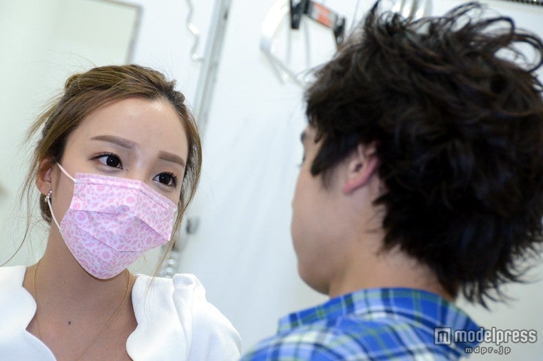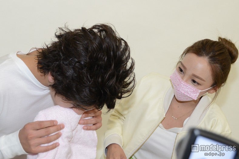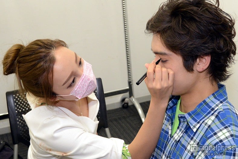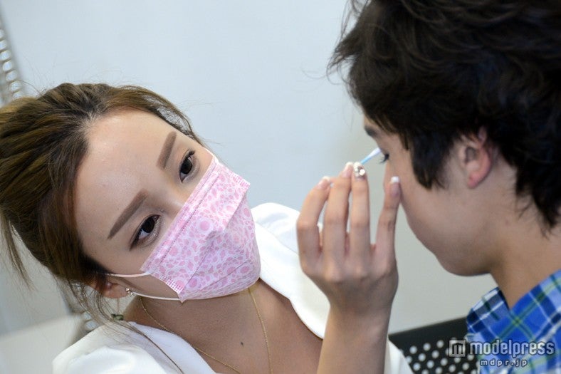 今回のメイクのポイントについて、「彼は普通の二重ですけど、外国の方は平行二重なんですね。なので偽二重の線を書いて二重の幅を変えました」とコメント。さらに「眉毛の距離を近づけつつ、二等辺三角形を描いたのがポイントですね」とニッコリ。出来栄えについては「100点」と笑顔で答えるも、「ただもう少し時間があれば、もっと似せられると思います」と、悔しさもにじませていた。