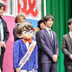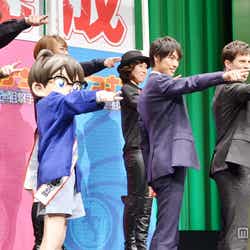 1997年に劇場版第一作が公開されて以来、毎年ゴールデンウィーク映画として親しまれている劇場版「名探偵コナン」シリーズ。今作は、「名探偵コナン」原作連載20周年記念映画で、謎の狙撃者による、緻密に仕組まれた連続狙撃事件を描く。福士は32歳の渋みのある声を出すのに苦労したと語り、「元から低い声なので、それを活かそうと思いましたが全然ダメでした」と肩を落とした。そんな福士の収録についてパトリックは「福士くんは、『この透き通る声じゃダメだー!そのガラガラの声が羨ましいー』って言ってきましたよ(笑)」と暴露。イジられた福士は「そこまでは言ってませんよ(笑)」とタジタジだった。