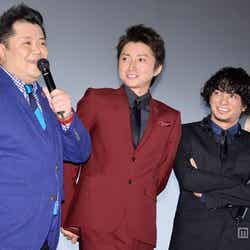 キャストや監督の仲がよく、いつもふざけ合っていたという撮影現場。藤原竜也は「小杉さん(ブラックマヨネーズ)と聖と僕は、ずっと一緒にいました。笑いの絶えない現場でした」と振り返る一方で、品川ヒロシ監督は「聖君と竜也君が揃ったときが一番タチが悪い」と笑いながら暴露。また、小杉も「ホコリだらけの俺の車を見たら、指で『田中聖参上』って書いてありました」と田中のヤンチャぶりを明かし、会場を笑いに包んだ。だが、小杉のクランクアップの日には、田中が車で駆けつけ、花束が贈られるというサプライズも。田中は「違うんです、あれは(共演者の)壇蜜さんを見に行ったんです」と照れ笑いする中、粋な心遣いに会場からは拍手が起こった。