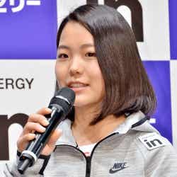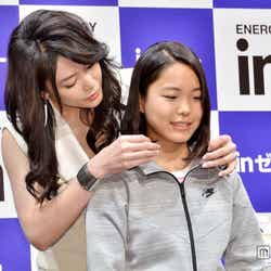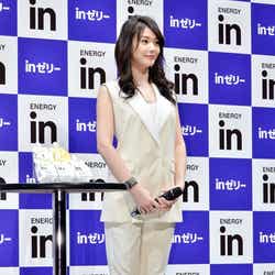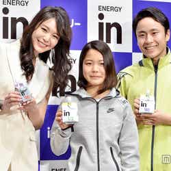 知花と高梨選手は2日、都内で行われたゼリー飲料の新CM発表イベントに出席。イベントには、知花と高梨沙羅選手のほか、フェンシングの太田雄貴選手も登場した。