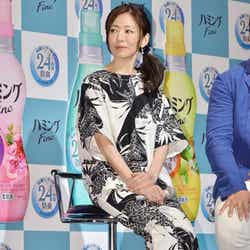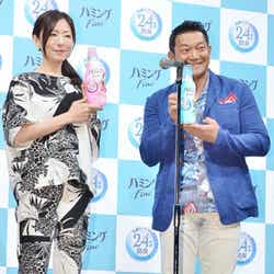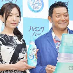 松雪とお笑い芸人の山口智充は8日、都内にて行われた柔軟剤の新CM発表会に出席。