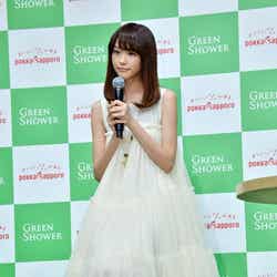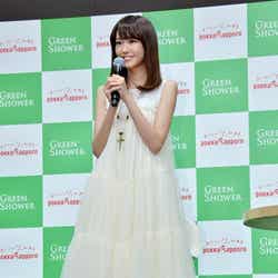 桐谷は9日、都内で行われた炭酸飲料の新CM発表会に出席。この日はホワイトのガーリーなワンピースにショートブーツを合わせたコーディネートで登場した。