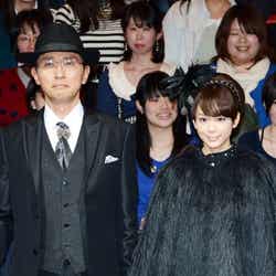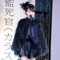 カラスをイメージしたファーのポンチョにヘッドドレス、足元はレザーのニーハイブーツという黒づくめの役衣装でスラリ美脚を披露した桐谷。「もし死神くんのキャラが現実にいたら、誰に会ってみたい?」という質問が飛ぶと、主任役の松重豊が「桐谷さんに決まってるじゃないですか」と迷わず即答。「男は小悪魔って言葉にそそるもんなんですね。桐谷さん以外は会いたくないです」と語り、桐谷の笑顔を誘った。