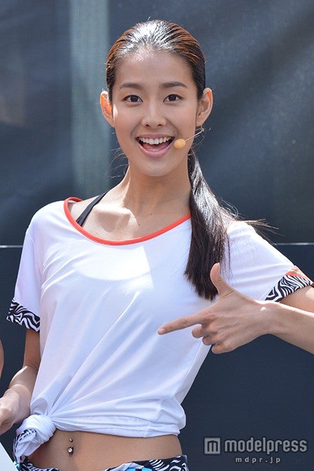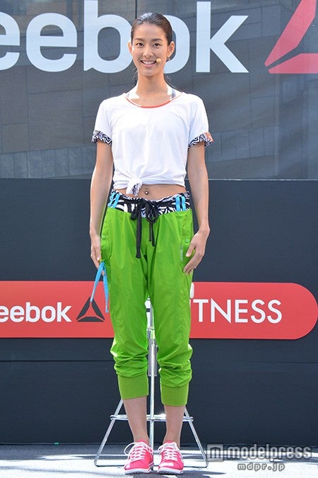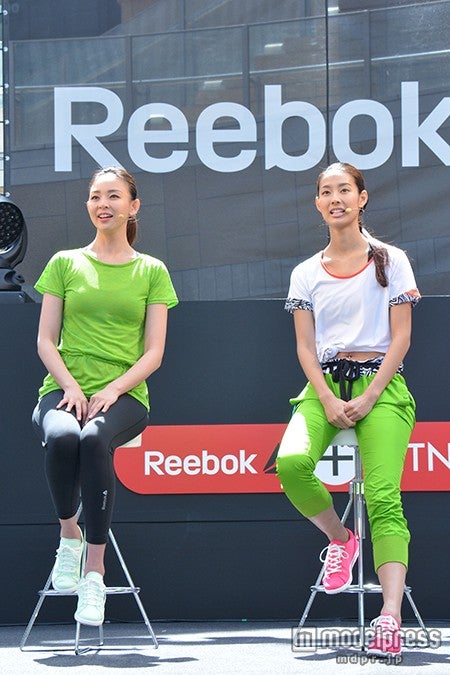 すみれは12日、都内で開催されたフィットネスフェスのオープニングセレモニーに、モデルのSHIHOと出演。2人は、しなやかな美ボディに、新緑を意識したカラフルなエクササイズウェアをまとって登場した。