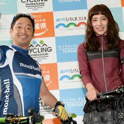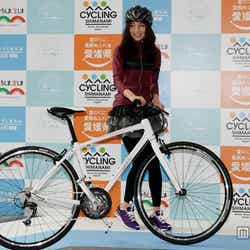 22日、都内にて行われた「サイクリングしまなみ」記者発表にお笑いトリオ・安田大サーカスの団長安田とともに出席したラブリ。ワインレッドのパーカー×グレーのミニスカートにレギンスを合わせたサイクリングスタイルで登場し、「このスタイルは着心地も通気性もいい。気持ちいいんですよ」と笑顔でファッションのポイントを語った。