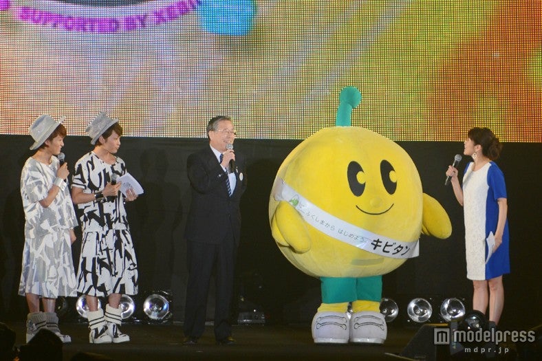 ステージでは佐藤雄平福島県知事、マスコットのキビタンを迎え、福島県民にエールを贈った。