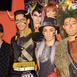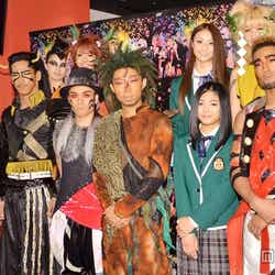 2日、都内にて行われたグローバルダンスエンターテインメント「Changes」の囲み取材に応じたEXILEのメンバー。それぞれ舞台の演出そのままの派手な衣装とメイクの出で立ちで登場した。