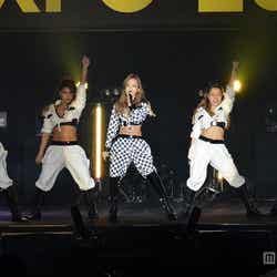 モノトーンの格子柄衣装で美くびれをあらわに登場した板野は、ソロデビューシングル曲の「Dear J」を“魅惑の腰つき”ダンスとともに披露。MCでは、「みなさん、盛り上がっていますか?盛り上がっていますか?」と強調しながら呼びかけ。「このように広いところでライブをするのは久しぶりなので、ドキドキしています」と笑顔で心境を明かし、「今日は『KAWAii!! NiPPON』というイベントなので、可愛さをアピールして帰りたいと思います」とお茶目にコメントした。