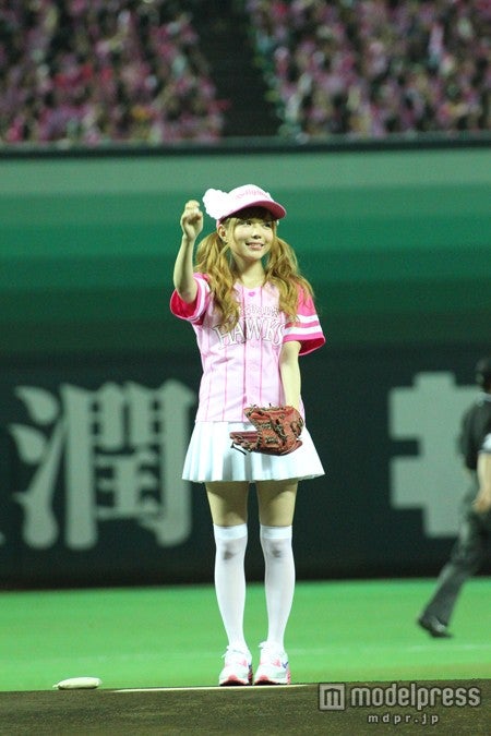益若つばさ、キュートなミニスカで始球式に初挑戦