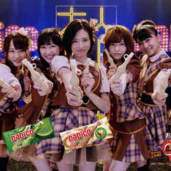 CMで共演している渡辺麻友、島崎遥香、川栄李奈、小嶋真子、大和田南那の5名と、総監督の高橋みなみや司会進行役の北原里英からは「カワイイ!」「いい匂いがする!」などと絶賛の声があがった。