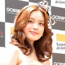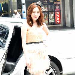 14日、都内にて行われた海外ドラマ「ゴシップガール ファイナル・シーズン」日本初上陸記念 ファイナルパーティー in SHIBUYAに出席した筧。同ドラマのブレアの役柄にちなみ、豪華なベアドレスにヘアアクセサリーを合わせ、笑顔でリムジンから登場した。