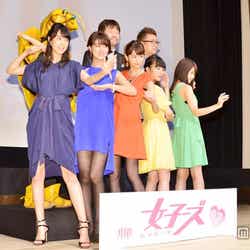 桐谷は、作品について「女子だけで戦隊物?どうなるんだろうという不安が少しあったんですけど、本当に面白いものができました」と語り、胸を張って挨拶。ビジュアル解禁より、戦隊ヒーローものさながらのコスチュームが話題を呼んだが、桐谷はコスチュームについて「初めて着たときは、嬉しくてしょうがなかったです。まだ、その時はポーズが決まっていませんでしたが、自然とポーズをとりたくなりましたね」とにっこり。女性キャスト5人で写真を撮影したと嬉々として語った。